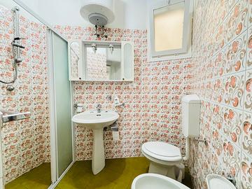 La spaziosa camera da letto matrimoniale è ideale per il riposo, mentre il bagno finestrato con box doccia e lavatrice offre comfort e funzionalità.