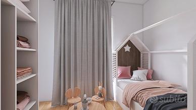 Superficie interna di 90 mq composta da: ingresso soggiorno con angolo cottura di 40 mq, disimpegno, due camere singole (una di 13 mq), camera matrimoniale di 16 mq, un bagno.