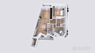 Superfici esterne: balcone di 18 mq, balcone di 12 mq, posto auto.