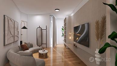 Superficie interna di 90 mq composta da: ingresso soggiorno con angolo cottura di 40 mq, disimpegno, due camere singole (una di 13 mq), camera matrimoniale di 16 mq, un bagno con doccia.
