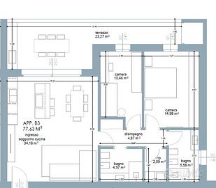 Proponiamo elegante e prestigioso appartamento trilocale situato nel cuore del quartiere residenziale di San Vito a Vigonza. Con una superficie calpestabile di 78 mq e un'esposizione ad est, questa proprietà è progettata per offrire comfort e stile moderno. L'appartamento si compone di una zona giorno di circa 35 mq, due camere da letto spaziose, due bagni e un ripostiglio. Completano la soluzione un ampio garage con ripostiglio da oltre 25 mq e due posti auto scoperti. Caratteristica di rilievo della proprietà è l'ampio terrazzo, che misura ben 25 mq. La nuova costruzione prenderà avvio in estate 2025, con consegna prevista nel dicembre 2026.
