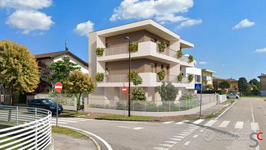 Sarmeola di Rubano: Palazzina suddivisa su tre piani fuori terra, composta da solo 2 abitazioni, al piano terra troviamo i garage, il vano tecnico, posto auto di proprietà ed il giardino privato per ogni unità abitativa. Al piano primo e secondo gli appartamenti composti da zona living, 3 camere, due bagni e ampi poggioli.
