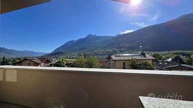 In zona centrale e comoda a tutti i servizi nel comune di Sarre, proponiamo in vendita ampio alloggio di 100 mq posto al secondo piano. L'immobile si compone di ingresso, cucina abitabile con terrazzino a sud, spazioso soggiorno con accesso al terrazzo panoramico e coperto di 25 mq con affaccio sulla zona verde condominiale, due camere matrimoniali e bagno.