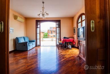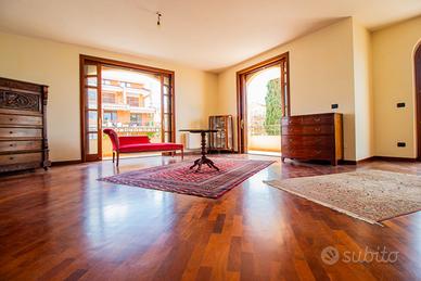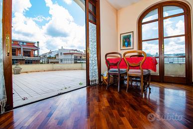 Nella zona più ricercata della città, in condominio di soli tre piani, proponiamo in vendita, panoramico attico su due livelli, composto da salone, cucina abitabile, due camere, due bagni, lavanderia e terrazzo al piano secondo oltre a salone, cucina, due camere, bagno e grande terrazzo al terzo. L'immobile gode di una bellissima vista panoramica sulla città, è divisibile in due unità semplicemente chiudendo la scala interna che collega i due piani per cui si presta a diversi usi e soluzioni. Ottime rifiniture interne, pavimenti in parquet su entrambi i piani, riscaldamento autonomo, due garage nello stesso stabile a cui si accede internamente tramite l'ascensore mentre esternamente attraverso cancello elettrico posto sulla via.