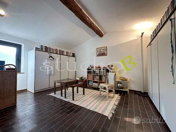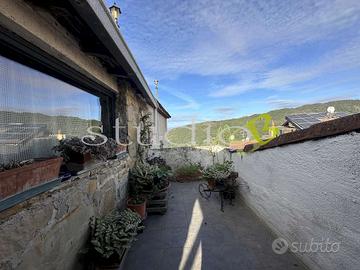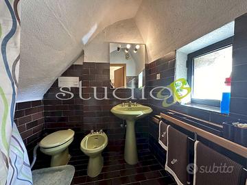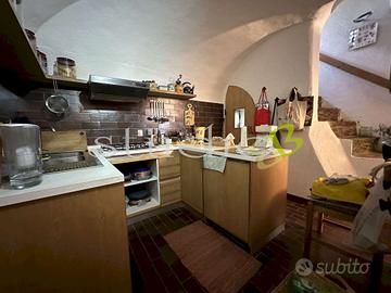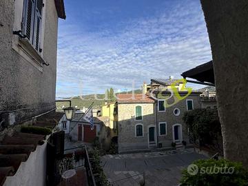 Salendo al secondo piano, troviamo una camera matrimoniale, un secondo bagno, un disimpegno e una cucina con sala da pranzo, che si affaccia su un balcone con vista sul centro storico, offrendo uno scorcio pittoresco del borgo.