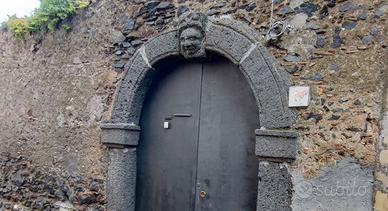 Ad accogliervi un portale in pietra lavica, sormontato da un volto allegorico, che un tempo proteggeva la dimora e i suoi abitanti. un ingresso unico che racconta storia, fascino e autenticità.