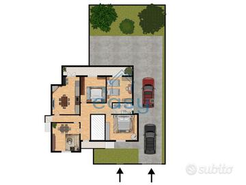 L'accesso all'immobile è garantito da un doppio ingresso, uno pedonale e uno carrabile, volti su uno spazioso giardino di circa 200 mq.