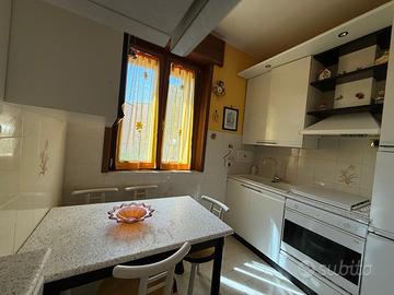 In zona semicentrale proponiamo in vendita una soluzione semindipendente su 2 livelli. Dispone di un cortiletto d'ingresso da cui si accede sia al vano scala che al piano terra dell'immobile, composto da sala, tavernetta, camera da letto e wc, mentre al piano primo è suddivisa in soggiorno, cucina, 2 camere da letto e wc. Completa terrazzo verandato sul retro con giardino di circa 150 mq.