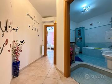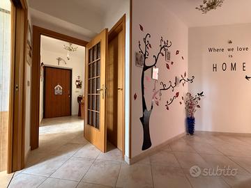 In località Serri, a 1.4 km dal Torrente Papardo e dalla via C.Pompea e dai servizi della zona Nord, a meno di 1 km dal Supermercato Mersì. Lo stabile di costruzione 2003, ha accesso tramite cancello carrabile automatico. L'appartamento è situato al piano 3° con ascensore. L'ingresso apre sul comodo disimpegno. A sinistra si accede all'ampio e luminoso soggiorno, con uscita tramite porta-finestra sull'ampia veranda, con affaccio ben esposto e scorcio panoramico sul mare. A destra si accede all'accogliente cucina abitabile, servita dal secondo balcone, con vista sull'incantevole scenario della costa tirrenica. Il corridoio conduce alla zona notte. Le camere da letto sono due, una matrimoniale e una singola, di forma regolare per cui di facile arredo. I bagni sono due. Il principale finestrato e con box doccia, il secondo di servizio ad aerazione forzata con vasca. E' presente un utile ripostiglio. L'immobile è dotato di riscaldamento autonomo in tutti gli ambienti e infissi in doppio vetro camera e pvc e persiane. Vi è la predisposizione per il condizionatore nel corridoio. Completano la proprietà il box auto di 22 mq situato al piano terra dello stabile e una cantina mansardata accessibile tramite scala condominiale. Data la comoda metratura, è ideale per una giovane coppia o una famiglia in cerca di un immobile di recente costruzione, in contesto tranquillo e pronto da abitare.