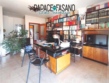 Il fabbricato è dei primi anni '80 - per cui antisismico - e fa parte di un lotto di 3 fabbricati totali "aperti". Al suo interno, l'appartamento si compone di Ingresso, ampio Salone doppio (attualmente suddiviso in Studio + Soggiorno), grande Cucina abitabile, Bagno da poco rinnovato, 2 PICCOLE Camerette (una con altro Bagno privato) e Camera Matrimoniale. Il tutto per 141 mq catastali, che al netto riporta a circa 120-125 mq interni + 3 Balconi.