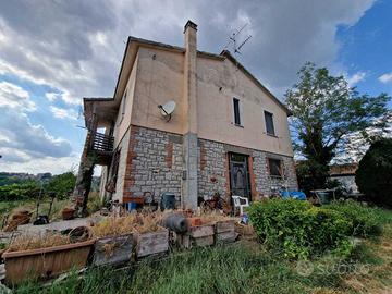 (Riferimento: AVIGLIANO320) In posizione aperta, soleggiata e panoramica alla prima periferia del paese di Avigliano Umbro, nel cuore dell'Umbria, la proprieta' che andiamo a proporvi ha potenzialita' riguardo la metratura, spazi ariosi, ambienti versatili e terreno. L'immobile e' stato progettato per ricavare due appartamenti speculari ma si puo' anche trasformare in un'attivita' recettiva. La sua composizione attuale: * Al piano terra: un ampio salone all'entrata con cucina open space, un bagno, un grande ripostiglio che puo' fungere da lavanderia, un secondo bagno e soggiorno. * Al primo piano collegato da scala interna, sei camere, un corridoio, due bagni. La parte esterna fornisce un grande magazzino per attrezzatura o puo' fungere da garage. Il terreno con vista panoramica e' suddiviso in parte seminativo, parte con olivi e parte con piccolo bosco. L'immobile puo' essere venduto con terreno scorporato e si valuta anche una permuta con un piccolo appartamento nel centro abitato.