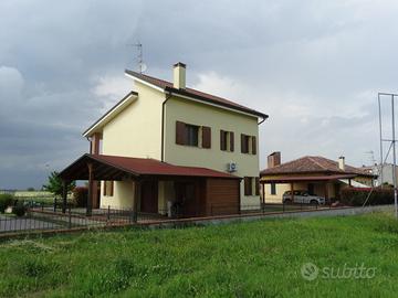(Riferimento: AP3241) Proponiamo IN ESCLUSIVA a Guarda Veneta, in tranquilla zona residenziale a pochi passi dal Centro del paese, graziosa casa singola di recente costruzione, disposta su due piani e composta da ingresso nel soggiorno con cucina separata abitabile, bagno e garage al piano terra, camera matrimoniale, camera doppia, camera singola, bagno, studio ed ampio terrazzo al piano superiore. In perfetto stato di manutenzione, con pergolato in legno e giardino privato, gode di porta blindata, infissi con vetrocamera, zanzariere, caldaia a condensazione, riscaldamento a pavimento, caminetto, allarme, aspirazione centralizzata, climatizzatore e predisposizione per l'irrigazione. Prezzo comprensivo di cucina, visibile da subito previo appuntamento