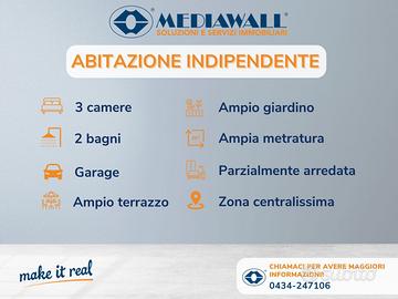 (Riferimento: BR-384-RV) Maniago (BR-384-RV) ABITAZIONE INDIPENDENTE | ZONA CENTRALE | AMPIA METRATURA | TRE CAMERE MATRIMONIALI | GRANDE TERRAZZO | LUMINOSA: abitazione completamente indipendente di ampie dimensioni a pochi passi dal centro e curata nei particolari, con ampio giardino e così composta da: ingresso, sala da pranzo, soggiorno con caminetto, cucina abitabile, al piano terra da studio, cantina, garage, bagno finestrato con doccia, centrale termica e ripostiglio/ricovero attrezzi, la zona notte è composta dalla camera matrimoniale con guardaroba, due camere doppie e bagno finestrato con vasca. L'abitazione si presente in ottime condizioni generali e verrà venduta parzialmente arredata. Prenota un sopralluogo a te dedicato!