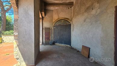 Al piano inferiore (piano terra/seminterrato) con ingresso indipendente dal vicolo e con la predisposizione per una scala interna, si trovano due locali allo stato grezzo (circa 130 mq) e un locale tecnico, un portico,e uno spazio esterno di 450 mq, in parte pavimentato (da ripristinare) e, ad un livello inferiore, un giardino con ulivi.