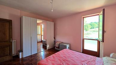 Al primo piano troviamo un ampio disimpegno con accesso al terrazzo con vista sulle colline, una camera matrimoniale, anch'essa con accesso al terrazzo, due bagni e altre due camere matrimoniali.
