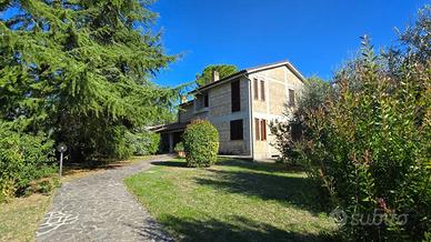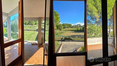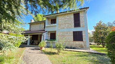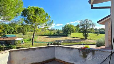 (Riferimento: Collescipoli03-1) Casa indipendente con giardino in ottima posizione A due passi da Collescipoli, immersa nel verde della campagna umbra, vendiamo casa indipendente con giardino di 2.550 mq e garage. L'abitazione si sviluppa su due livelli ed è composta da un ampio ingresso al piano terra, una cucina abitabile con camino e accesso al portico, un doppio soggiorno doppio con zona pranzo con camino e zona relax, una camera matrimoniale, un bagno con vasca e uno studio con accesso al portico. Al primo piano troviamo un ampio disimpegno con accesso al terrazzo con vista sulle colline, una camera matrimoniale, anch'essa con accesso al terrazzo, due bagni e altre due camere matrimoniali. Il piano seminterrato è suddiviso tra un'ampia taverna con camino e angolo bar, cantina, locale tecnico, cucina /lavanderia e un garage di circa 42 mq. Porte, finestre in legno, la scala in legno massello, tutto realizzato su misura. Porte e finestre in legno, scala in legno massello, tutto su misura. Pavimenti in parquet nelle camere da letto, in grès nelle zone giorno e nel seminterrato. La casa gode di due ampi portici, un ampio giardino (possibilità di fare una piscina) con alberi di alto fusto e ulivi ed un pozzo con varie fontanelle sparse nel giardino. Posizione strategica, in campagna ma vicino ai servizi, accesso facile dalla strada asfaltata con la fermata dell'autobus che porta in città Autobus 1 min; Stazione FS 7km; Collescipoli 1.5km, Supermercati 1.5km, Terni 4 km, Autostrada 7 km, Ospedale 6.5 km, Todi e Spoleto 40 km, Perugia 80 km, Roma 90 km