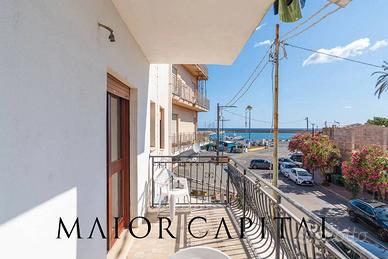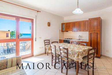 L'ingresso si apre su un soggiorno spazioso, luminoso con cucina a vista, un ambiente conviviale e accogliente che si affaccia direttamente sul balcone, da cui si gode una piacevole vista sul mare di La Caletta.