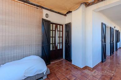 Dal cortile privato si accede a una spaziosa terrazza, luogo perfetto per i momenti di relax all'aperto, che introduce al grande soggiorno luminoso. La casa dispone di ben quattro camere da letto, due delle quali affacciate sulla terrazza principale. Sono presenti due bagni e una cucina collegata a una veranda vivibile.