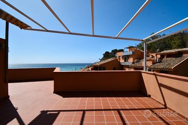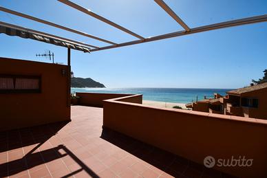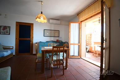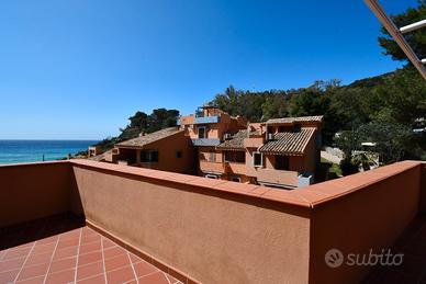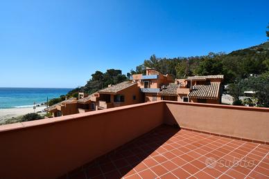 In una posizione esclusiva e irripetibile, a pochi passi dalla sabbia bianca e dal mare cristallino della spiaggia di Solanas, proponiamo in vendita una casa semindipendente inserita in un condominio signorile, riservato e immerso nella quiete della natura mediterranea. L'immobile, costruito negli anni '90, e mantenuto in ottime condizioni, offre una superficie interna di circa 90 mq, organizzata in una comoda tipologia quadrivano con soggiorno, cucina separata, tre camere da letto e bagno dotato di doppio servizio. A completare la proprietà, una terrazza sovrastante di 100 mq con vista mare, ideale per pranzi all'aperto, momenti di relax o per godersi il tramonto in totale privacy. Posto auto in cortile condominiale. Contesto e servizi Solanas è una località balneare tra le più belle della costa sud-orientale della Sardegna, a circa 30 minuti da Cagliari e a breve distanza da Villasimius (15 minuti) e Torre delle Stelle. La zona è servita nei mesi estivi da market, farmacia, bar, ristoranti, edicole, stabilimenti balneari attrezzati e servizi per sport acquatici. Nei mesi invernali, la tranquillità del contesto la rende ideale anche per chi cerca una residenza stabile o un rifugio per il fine settimana. La zona è ben collegata e, facilmente accessibile tutto l'anno grazie alla ss 125 o alla strada panoramica SP17, che regala scorci mozzafiato sulla costa. Contattaci per maggiori informazioni o per organizzare una visita esclusiva in loco.
