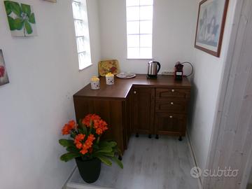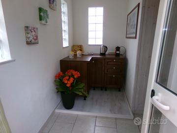 L'appartamento, di circa 25 mq, può ospitare comodamente 2 adulti (con la possibilità di accogliere anche un bambino piccolo). È composto da andito con zona colazione, una camera da letto matrimoniale, bagno privato e una splendida veranda esterna con tavolo e sedie - ideale per pranzi e cene all'aperto, immersi nel verde.