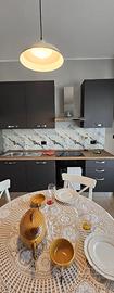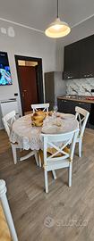 Cucina Attrezzata: Angolo cottura completo di tutti gli elettrodomestici e accessori necessari, con zona pranzo dedicata (tavolo, sedie, piatti, posate etc.).