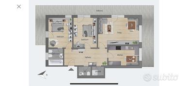 Collegato ai 4 passi affittasi appartamento di 90 mq con ampio ingresso, due camere matrimoniali, due bagni, ampio soggiorno, cucina abitabile, balcone che circonda tutto l'appartamento. Cantina per deposito sci e posto auto coperto riservato.