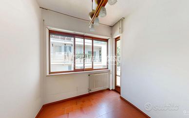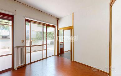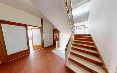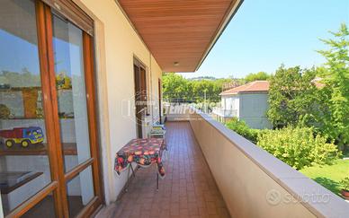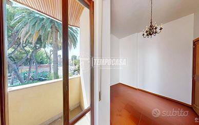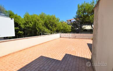 PORTO SAN GIORGIO - VIALE DELLA VITTORIA/COMUNE - In posizione riservata e centrale, all'interno di un esclusivo contesto trifamiliare, appartamento con ingresso autonomo dalla corte di circa 55 mq e sviluppato principalmente ai piani 1° e 2° per un totale di 250 mq abitativi ed ulteriori 250 mq di terrazzi e balconi, il tutto così composto: PIANO 1° di ben 200 mq divisi in ampia zona giorno con uscita sulla porzione est di terrazzo (135 mq), e zona notte composta da due camere matrimoniali, entrambe con uscita sulla porzione ovest di terrazzo (80 mq), 3 bagni e lavanderia ricondizionabile ad ulteriore camera da letto. A completare il piano, balconi di pertinenza sui lati nord e sud per complessivi 35 mq circa. PIANO 2° di ulteriori 35 mq, collegato da scala interna (quest'ultima compresa nel calcolo della metratura abitativa complessiva) e composto da 2 camere da letto ed un bagno di servizio. A completare la soluzione troviamo i piani terra e seminterrato così descritti: PIANO TERRA con ingresso indipendente dalla corte di rappresentanza (55 mq), e caratterizzato da un elegante vano scala che conduce sia alla parte abitativa posta al piano 1° sia al piano seminterrato. PIANO SEMINTERRATO principalmente utilizzato come magazzino (87 mq totali) con H 2,10 m) ed in parte ad uso garage (17 mq); accesso carrabile dal retro tramite cancello elettrico che conduce alla corte privata di circa 75 mq, con ulteriori 30 mq coperti utilizzati come posti auto. INTERNI in buono stato, con ambienti ampi e luminosi, ben esposti su tutti e quattro i lati e caratterizzati da luce naturale nell'arco dell'intera giornata. N.B. La scala centrale e la presenza di terrazzi sia sul lato est, sia sul lato ovest, consente inoltre all'immobile di poter essere diviso in 2 o 3 unità abitative. ESTERNI in buone condizioni complessive, con corte privat