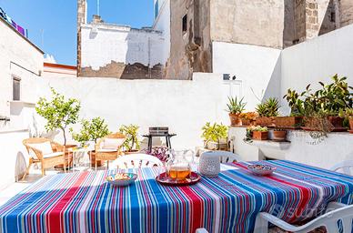 Galleria Immobiliare presenta in vendita caratteristica soluzione indipendente posta nel centro storico, recentemente ristrutturata, composta da unità abitativa principale, due ampie terrazze e box auto al piano terra. L'abitazione viene venduta completa di ogni comfort, con una ristrutturazione integrale eseguita nel 2016, che ha ammodernato l'immobile nell'impiantistica conducendolo agli attuali standard se non oltre con l'inserimento di un impianto completo di batterie di accumulo, senza ledere la storicità del fabbricato con finiture che rispettano a pieno il carattere originario della struttura e le tipiche volte presenti. Contattaci per visitare l'immobile. L'appartamento si compone di ampio ingresso, soggiorno, cucina abitabile con in adiacenza prima ampia terrazza a livello, ottima per pranzi e cene conviviali, disimpegno, due camere e doppi servizi al piano primo; al piano secondo ampio locale multiservizio (studio/sala hobby/sala cinema) con bagno/lavanderia e seconda importante terrazza a livello da destinare a solarium. Al piano terra un comodo box auto che risolve il problema parcheggio tipico dei centri storici. Chiamaci per ricevere maggiori informazioni. Siamo in Via Mastropaolo, a pochi passi dalla chiesa del Carmine e dalla Chiesa Matrice, una delle vie principali del nostro centro storico e per questo fra le meglio manutenute. Le visite sull'immobile saranno eseguite solo dopo consulenza dedicata al cliente in studio presso la nostra agenzia. Scegli se sarà questa la tua prossima casa. Per fissare una consulenza d'acquisto generica da cui iniziare una ricerca assieme o prendere appuntamento per questo specifico immobile trovi il nostro numero in calce all'annuncio.