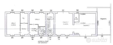 Al piano primo troviamo la parte abitativa, composta da un trilocale di circa 85 mq e un bilocale di circa 45 mq. Al piano terra, invece, si sviluppa la zona operativa con un ufficio di circa 80 mq, un magazzino di 40 mq e un comodo box auto. L'area cortilizia, di circa 500 mq, è suddivisa in due ingressi separati, uno per la parte operativa e l'altro per la parte residenziale.
