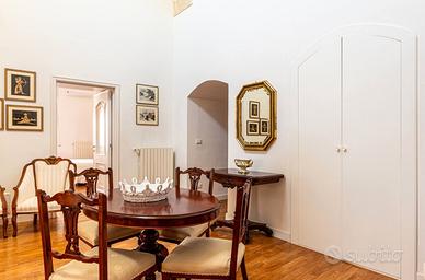 L'appartamento si compone di ampio ingresso, soggiorno, cucina abitabile con in adiacenza prima ampia terrazza a livello, ottima per pranzi e cene conviviali, disimpegno, due camere e doppi servizi al piano primo; al piano secondo ampio locale multiservizio (studio/sala hobby/sala cinema) con bagno/lavanderia e seconda importante terrazza a livello da destinare a solarium. Al piano terra un comodo box auto che risolve il problema parcheggio tipico dei centri storici.