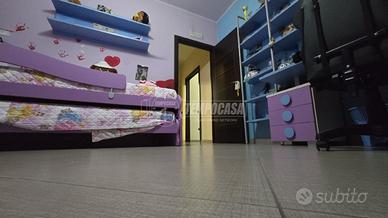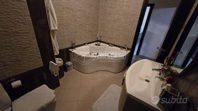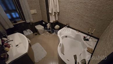 Salone e bagno con doccia entrambe servite da terrazzo comunicante, disimpegno che divide la zona notte dalla zona giorno, camera da letto con cabina armadio, cameretta e bagno con vasca.
