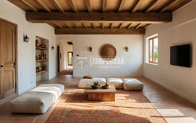 - Un primo fabbricato distribuito su tre livelli e composto da nove locali (195 mq di superficie)