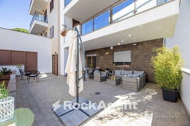 Rif:162768 - 03/04/2026 (128018086) - Situato in Via Giana Anguissola a Roma, questo appartamento si trova in un contesto residenziale tranquillo e ben collegato. La zona è caratterizzata da un ambiente accogliente e offre una buona qualità della vita, con servizi e negozi facilmente raggiungibili. L'edificio, di cui l'appartamento fa parte, è stato costruito nel 2023, si sviluppa su cinque piani ed è dotato di ascensore, garantendo comodità e accessibilità. L'appartamento, posto al primo piano nobile, si estende su una superficie commerciale di circa 98 metri quadrati (APPARTAMENTO+ LOCALE TECNICO), circa 70 metri quadrati di TERRAZZO e circa 28 metri quadrati di GIARDINO. È stato recentemente ristrutturato e presenta un design moderno e funzionale. La zona giorno è caratterizzata da una cucina a vista che si integra armoniosamente con il soggiorno, creando un ambiente luminoso e accogliente. Le due camere da letto offrono spazi confortevoli e ben organizzati, mentre i tre bagni garantiscono praticità e comfort per tutta la famiglia. Un terrazzo privato rappresenta un valore aggiunto, ideale per momenti di relax all'aperto. Tra le altre caratteristiche dell'immobile, troviamo una cantina di circa 55 metri quadrati, che offrono ulteriore spazio di stoccaggio e comodità. La sicurezza è garantita da un impianto di allarme, una porta blindata e un cancello elettrico. Gli infissi esterni in doppio vetro e PVC assicurano un buon isolamento termico e acustico. L'appartamento è parzialmente arredato e dotato di un sistema di climatizzazione autonomo, con aria condizionata freddo/caldo, e un riscaldamento ad aria alimentato da una pompa di calore. La presenza di un videocitofono aggiunge un ulteriore livello di sicurezza. Con due lati liberi ad angolo, l'appartamento gode di una buona esposizione e luminosità. Inoltre, abbiamo la possibilità di un ingresso secondario e la pian - Classe: A3 - IPE: 3.51 kWh/mq anno