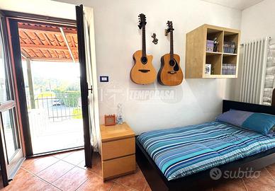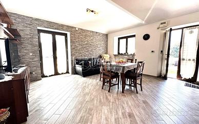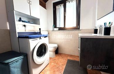 La proprietà ricopre una superficie complessiva di c.a. 107 mq ed è così composta: con accesso da cortiletto recintato si giunge su generosa zona giorno con cucina lineare a vista e comoda zona salotto, bagno finestrato al piano dotato di porta scorrevole e box doccia. Da scala interna in legno, servita di ampio sottoscala sfruttabile con mobilio, si giunge al piano primo dove troviamo la camera da letto servita di accesso su balcone, cameretta servita di accesso su stesso balcone oltre al terrazzino privato, bagno finestrato con box doccia. Il piano primo è dotato di zanzariere su tutti gli infissi.