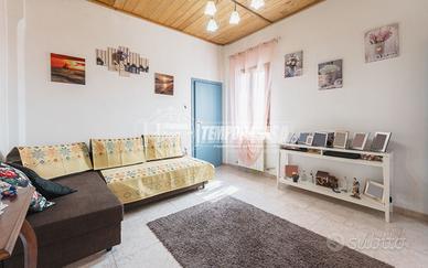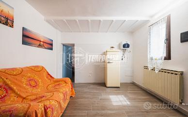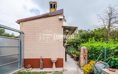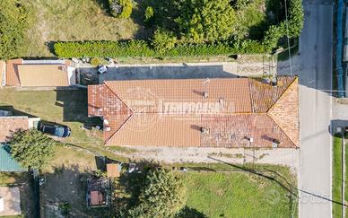 Soluzione rifinita esternamente in intonaco civile arancione, con facciata in rifinimento e tetto a falde. Tetto rifatto nel 2023 con guaina, coppi nuovi e lana di pietra come isolante.