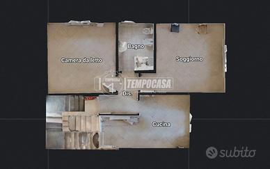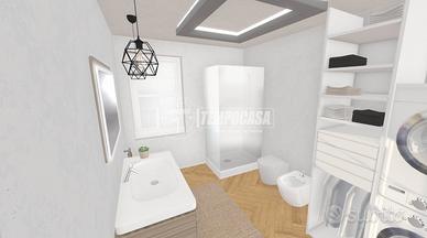 Dalla cucina si ha accesso anche al piano superiore che conduce ad un sottotetto mansardato dove verranno ricavati un'altra camera da letto, uno studio e un ulteriore bagno ad uso lavanderia.