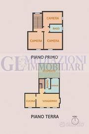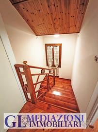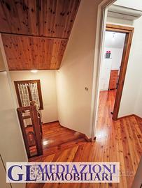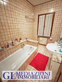 L'abitazione si compone di una zona giorno di circa 45 mq con cucina separata, tre camere da letto al piano primo, due bagni finestrati di cui uno al piano terra e uno al primo piano, oltre a un comodo ripostiglio. Garage al piano terra comunicante con l'abitazione. Le finiture sono originali dell'epoca di costruzione ma ben mantenute. Ottima esposizione sud, est e nord, che garantisce una buona luminosità durante tutto l'arco della giornata.