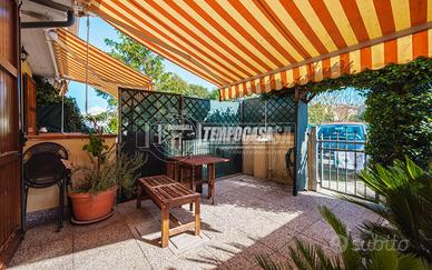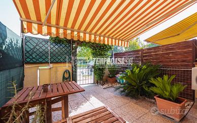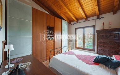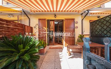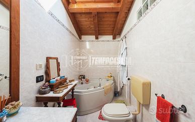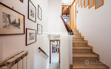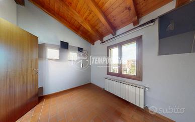 Trattasi di una Soluzione terratetto con ingresso indipendente, libera su due lati, disposta su più livelli. Internamente così composto: al piano terra Ingresso su Soggiorno (21,6 Mq), si procede al piano rialzato con Cucina Abitabile (9,5 Mq) e un Bagno (2,6 Mq). Tramite il vano scala si arriva alla Camera Matrimoniale (17 Mq) con Travi a Vista. Infine all'ultimo piano Sottotetto rifinito (10,3 Mq) e Bagno (5,6 Mq). Completa la proprietà un Cortile privato all'Ingresso dell'immobile (17 Mq) e un Garage al piano semi-interrato (23 Mq) accessibile sia dall'interno dell'abitazione sia dal Corsello nel retro con passaggio carrabile e/o pedonale.