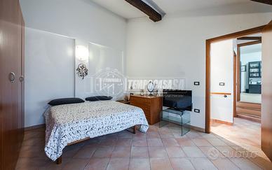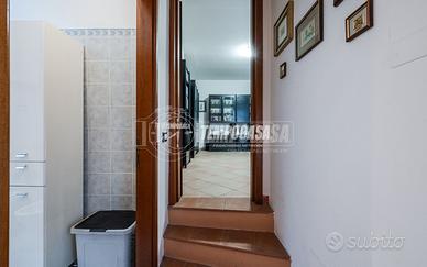 Trattasi di una Soluzione terratetto con ingresso indipendente, disposta su due livelli, piano terra e piano primo. Il piano terra è composto da Ingresso su Soggiorno (15,6 Mq), Cucina semi-abitabile (6,1 Mq), Bagno (2,5 Mq); attraverso il vano scala (5 Mq) accediamo al piano superiore dove troviamo Disimpegno Notte (2,7 Mq), Camera Matrimoniale (16,2 Mq), Camera Matrimoniale (15,6 Mq), Bagno (4,7 Mq). Completa la proprietà Cantina esterna ciclabile di 4,6 Mq al piano terra.
