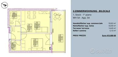 Al centro di Soprabolzano nasce questo nuovo progetto, CasaClima A Nature, con 8 unità abitative. L'edificio è strutturato come segue: Al piano interrato si trova un garage sotterraneo comune con box auto (a partire da 35.000 euro) e locali cantina. Gli appartamenti si trovano al piano terra, al 1° e al 2° piano. Gli appartamenti dispongono di stanze luminose con riscaldamento a pavimento, terrazza o giardino, nonché di una cantina inclusa nel prezzo.