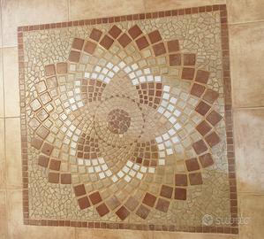 Un bagno con placcaggio piastrelle mosaico, finestrato e servito da ampio box doccia.