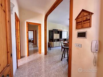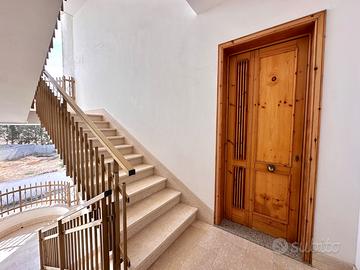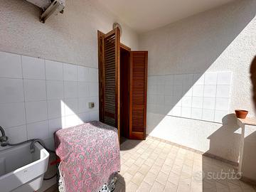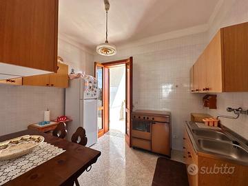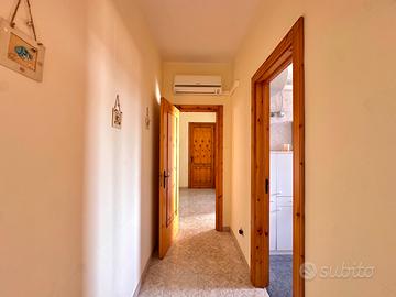 Entrando si viene accolti da un disimpegno d'ingresso, che ci conduce nel soggiorno, caratterizzato dalla doppia esposizione che garantisce luce naturale durante tutte le ore del giorno. Da qui, tramite portafinestra, si ha accesso diretto sul primo balcone scorcio vista mare di questa abitazione, molto spazioso, e questo permette di poter pranzare o cenare fuori. Proseguendo all'interno sempre dallo stesso soggiorno, si può accedere al secondo balcone, questo di moderate dimensioni.