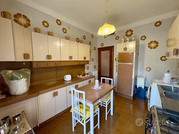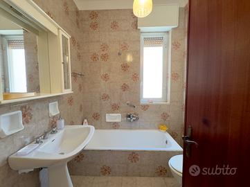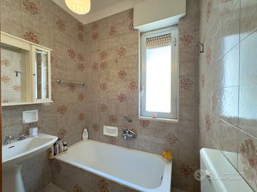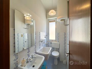L'appartamento dispone di due bagni entrambi finestrati: il principale è completo di sanitari, lavabo e vasca da bagno; il secondo, di servizio, è dotato di due lavabi e WC.