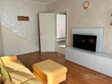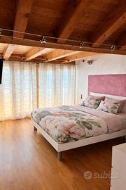 Proponiamo in vendita luminoso appartamento di 99 mq situato al primo piano di un condominio di 7 unità del 2008, in tranquilla zona residenziale comoda al centro di Camposampiero. L'immobile si sviluppa su due livelli e offre spazi ben distribuiti e funzionali. La zona giorno è composta da un'ampia cucina e da un luminoso soggiorno, entrambi con affaccio su poggiolo, ideali per godere di luce naturale. La zona notte, caratterizzata da camere mansardate, dona un tocco accogliente e unico all'abitazione ed è completata da una comoda cabina armadio. Sono presenti due bagni, uno per livello. Dal punto di vista del comfort abitativo, l'appartamento è dotato di riscaldamento a pavimento al piano inferiore e radiatori al piano superiore. È inoltre presente aria condizionata con pompa di calore, con uno split per piano. Completano le dotazioni tende da sole elettriche, tapparelle e velux elettrici al piano superiore, oltre a zanzariere su tutti gli infissi. Le spese condominiali sono contenute, pari a circa 50-60 euro al mese. L'appartamento viene venduto completamente arredato, pronto per essere abitato fin da subito. Completano la proprietà un garage e una cantina di pertinenza. Soluzione ideale per chi cerca comfort, tranquillità e vicinanza ai principali servizi.
