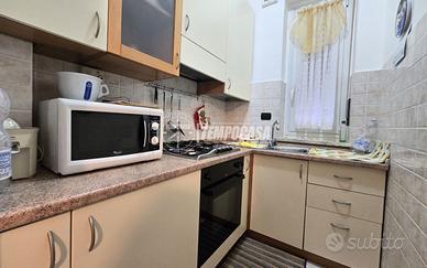 L'appartamento é composto da ingresso su disimpegno, cucina con ampio tinello e cucinino con sfogo su balcone verandato, camera matrimoniale dalle generose metrature e ulteriore balcone dotato di tende da sole, bagno finestrato con box doccia ed angolo lavanderia.