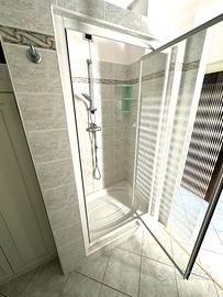 Esposta su due lati paralleli, l'unità immobiliare risulta composta da ingresso su ampio soggiorno con balcone (balcone regolarmente chiuso), cucina abitabile con uscita su secondo profondo balcone chiuso, andito di disimpegno, tre camere da letto, due bagni, ripostiglio, soffitta al piano quarto. Completa la proposta di vendita un ampio garage posto al piano terra dello stabile.