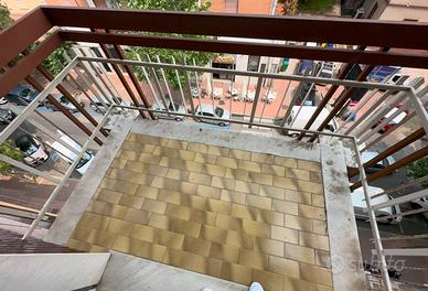 L'appartamento risulta sano e ben conservato (più recenti rispetto all'epoca della costruzione le pavimentazioni e gli infissi esterni), è attualmente composto da ingresso, grande soggiorno con uscita su profondo balcone, cucina abitabile con uscita su secondo profondo balcone, andito di disimpegno, tre spaziose camere da letto (una delle quali con uscita su terzo balcone), due bagni, il tutto per una superficie catastale totale di 149 mq.