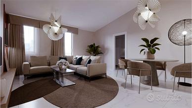 L'appartamento, internamente è caratterizzato dalla luminosa zona giorno con cucina separata, e sfogo tramite porta finestra al profondo balcone con zona lavanderia. Dal disimpegno, raggiungiamo la zona notte composta dalle due camere da letto di cui una singola e una matrimoniale con proprio bagno privato e dal secondo bagno.