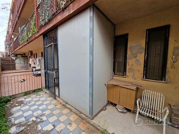 L'appartamento è composto da un ingresso, un soggiorno con angolo cottura, dove momentaneamente è stata creata una stanzetta, un bagno, un'area esterna con un piccolo giardino ed un posto auto.