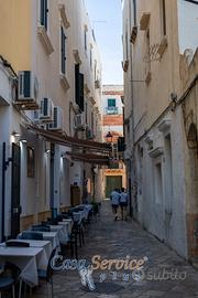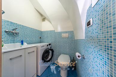 L'ingresso si apre su un ampio e luminoso soggiorno, il fulcro della casa, ideale per accogliere ospiti in un'atmosfera elegante e rilassante. La cucina abitabile, completa di un piccolo balcone, offre uno sguardo affascinante sulle suggestive vie del centro storico, permettendo di vivere quotidianamente la magia di Gallipoli.